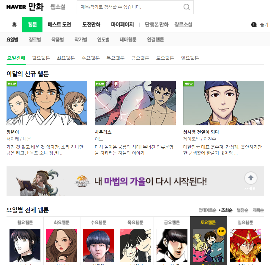 사실 많고 많은 웹툰지 중에서 네이버 웹툰을 즐겨 보았던 건