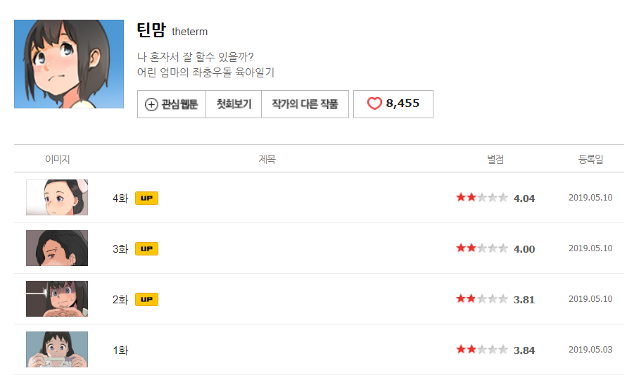 그러다가 발견한 새 웹툰, 틴맘(TEENMOM)을 오늘 이야기해 보려고요.